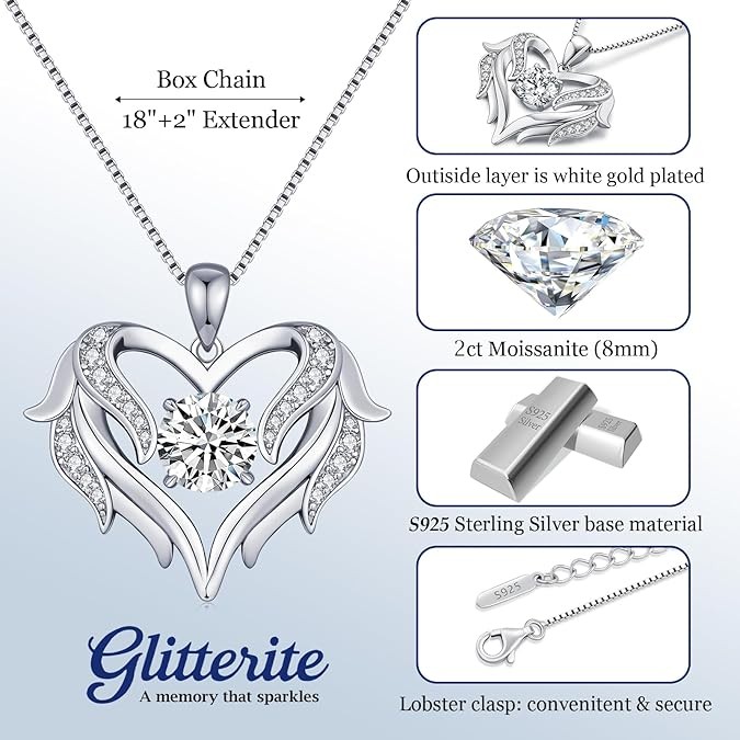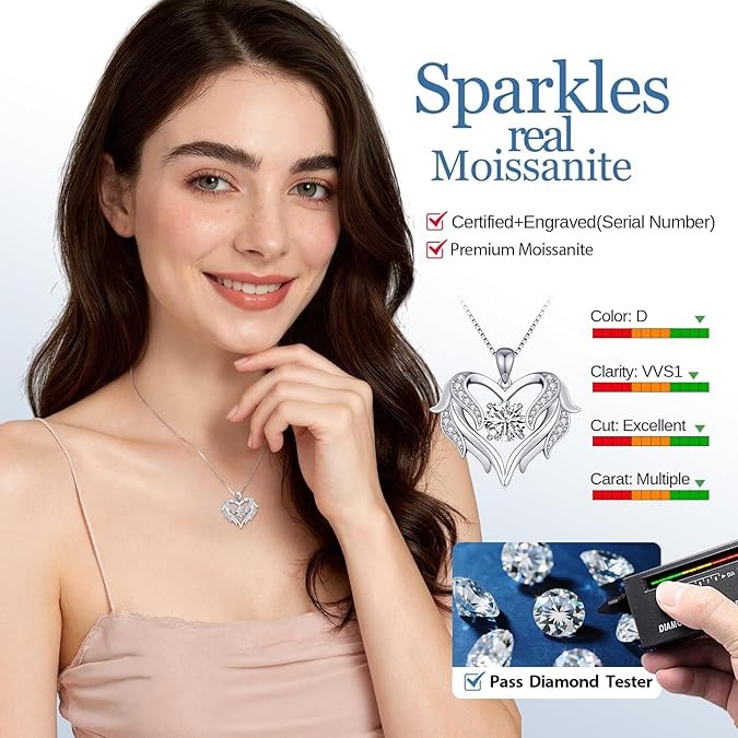 1-3 Carat Moissanite Heart Necklace for Women, 925 Sterling Silver Moissanite Pendant Necklace, Anniversary Present for Her, Birthday Gift for Wife, Diamond Jewelry Present for Girlfriend, Mom, Daught