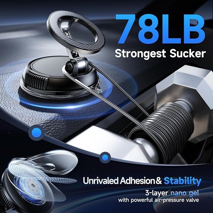 ANDERY Car Phone Holder for Magsafe [78+LBS Strongest Suction & 2400gf Magnetic] 360° Adjustable Car Phone Mount, Phone Holders for Your Car for iPhone 17 Pro Max 16 15 14 13 12 Air Plus, Carbon Fiber