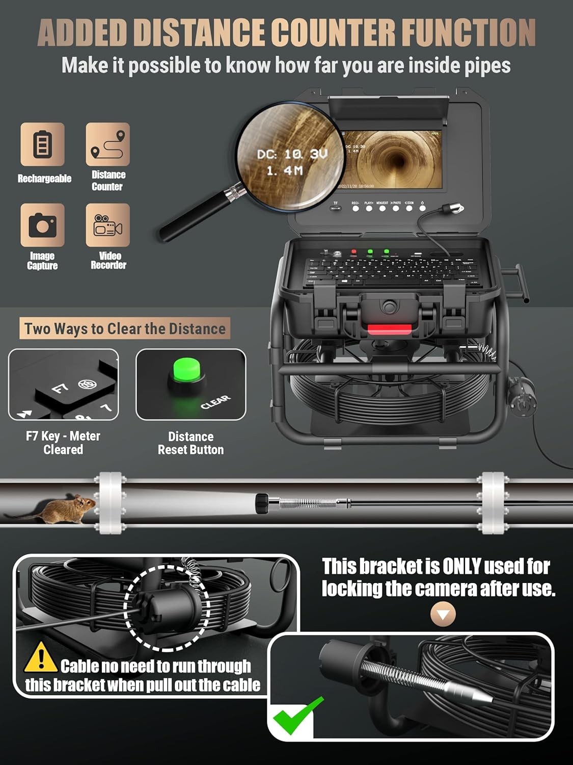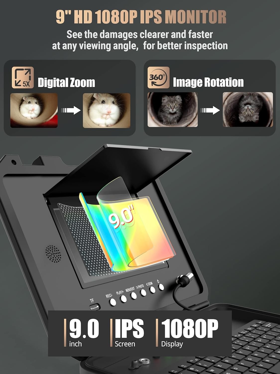 Anysun All-in-1 Sewer Camera - 512Hz, Distance Counter, Self-Leveling, 1-Touch Video/Audio, 165Ft Pipe Inspection Camera with 9" 1080P Screen, IP68 Industrial Borescope, 16GB