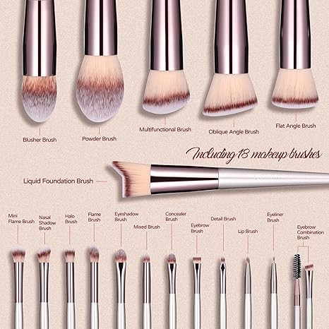 BS-MALL Makeup Brush Set 18 Pcs Premium Synthetic Foundation Powder Concealers Eye shadows Blush Makeup Brushes with black case