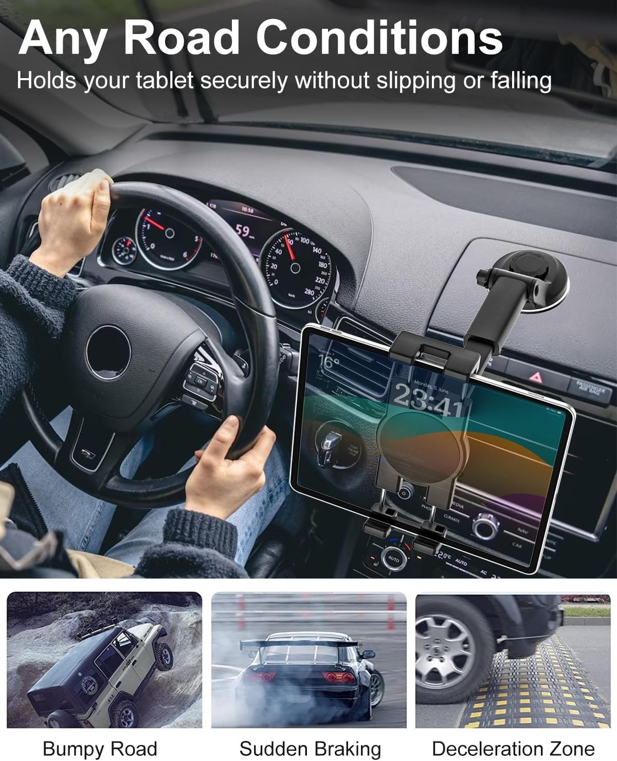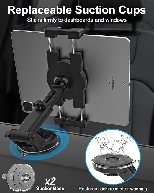 GDZN Dashboard Tablet Mount for Car, [Replaceable Suction Cup] Dash Tablet Holder Clip with Strong Sticky Gel Suction Cup for iPad Pro Mini Air, Galaxy Z Fold, Tabs, iPhone, Fire, 4-11" Device