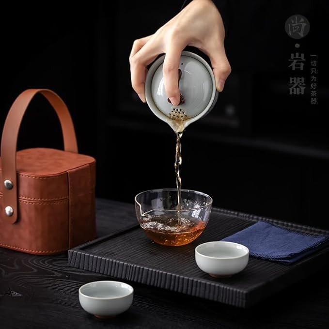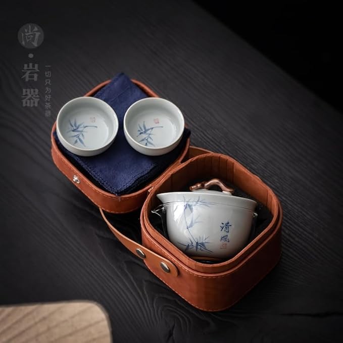 Hand-painted travel tea set Tea set portable quick cup camping outdoor travel one pot and two cups covered bowl Kung Fu tea cup tea cup