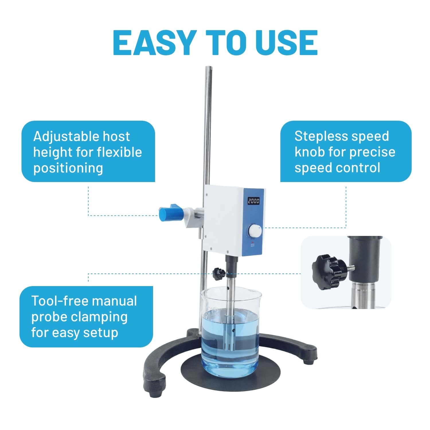 High Speed Homogenizer Lab Disperser Emulsifier,2000-20000rpm Digital High Shear Mixer Emulsification Machine,20-1000ml Capacity Emulsion Homogenize Dispersion Machine with Non-Slip Mat