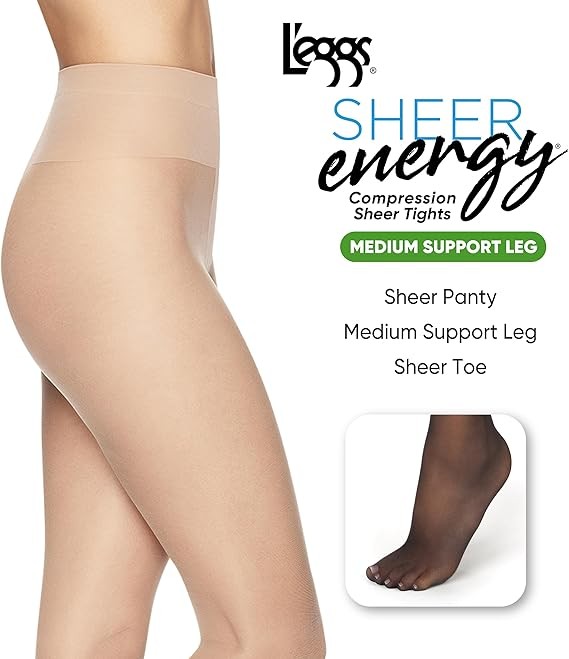 L'eggs Sheer Energy Women's Standard-Panty, Sheer Toe, Nylon Pantyhose