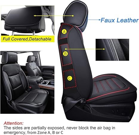 LUCKYMAN CLUB Silverado Seat Covers Fit for 2007-2023 2024 2025 Chevy Sierra Silverado 1500 2500 3500 Crew,Double,Extended Cab with Water Proof Faux Leather (Black & Red Full Set)