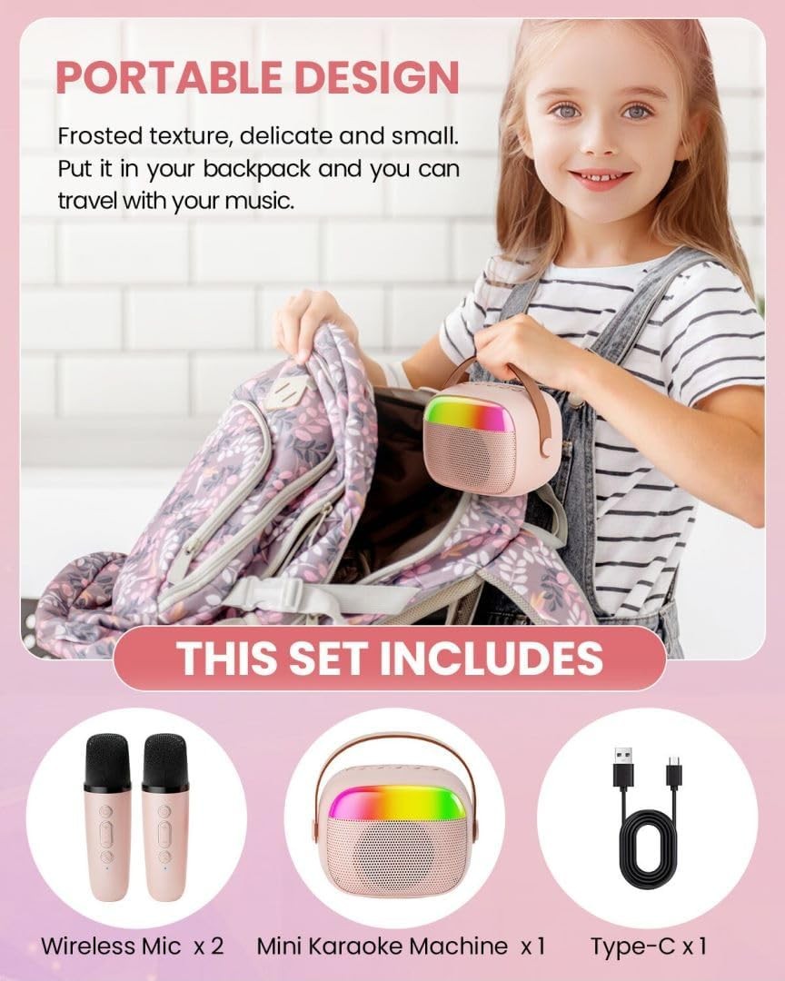 Mini Karaoke Machine for Kids, Toy for Girls Portable Bluetooth Speaker with 2 Wireless Microphones, Fashion Toy Gifts for Christmas Birthday, for 3 4 5 6 7 8+ Year Old Girls Gifts(Pink)