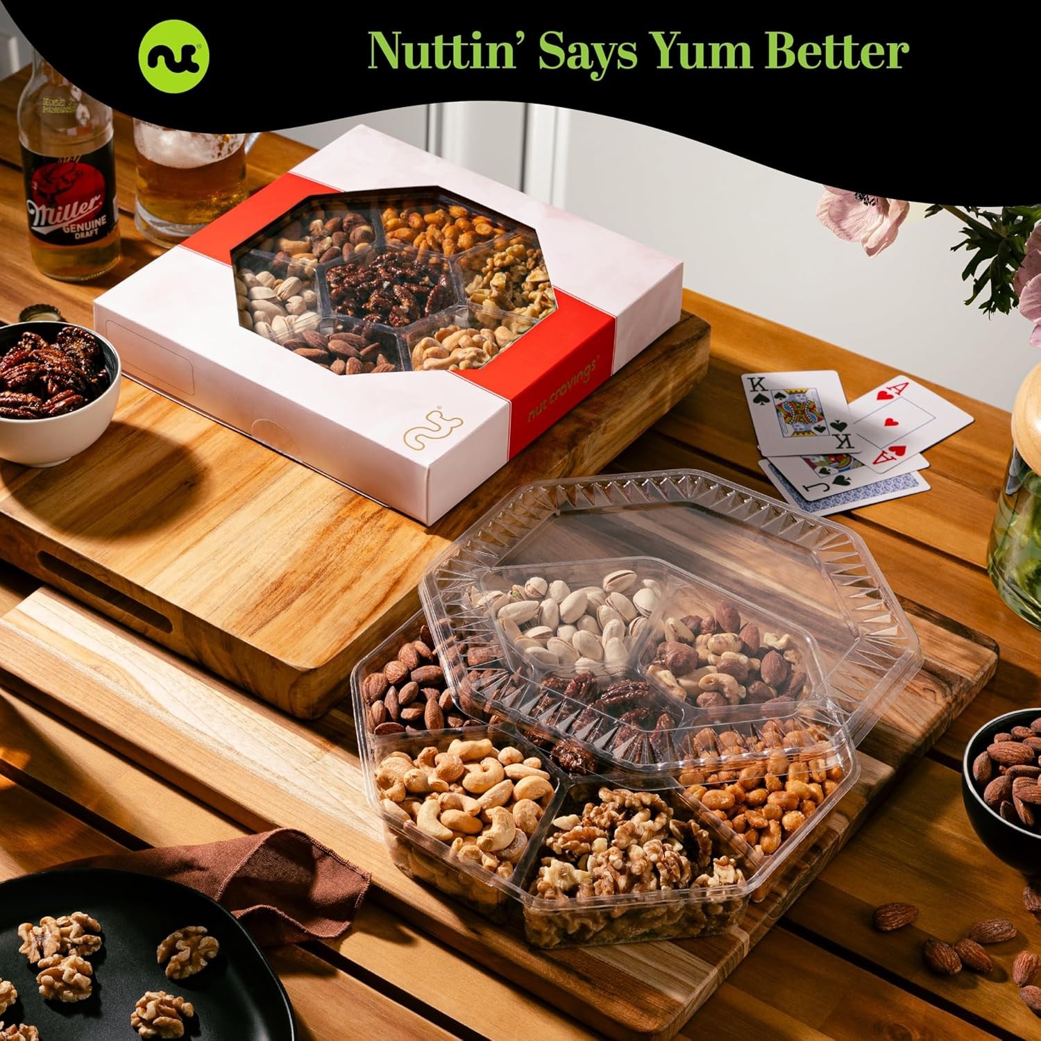 NUT CRAVINGS - Halloween Treats For Adults Mixed Nuts Gift Basket in Red Gold Box (7 Assortments, 1 LB) Holiday Xmas Christmas Food Arrangement, Healthy Snack Care Package, Food Assortments