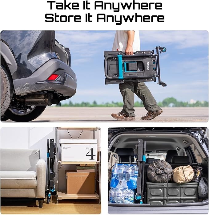 SEESII 2-in-1 Folding Hand Truck Dolly, 330 lbs Max Capacity TPR Wheels Heavy-Duty Cart, 3-Gear Retractable Handle for Utility Move Shopping Delivery