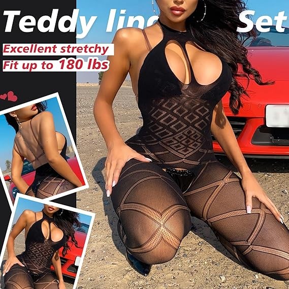 Sexy Lingerie for Women Naughty Fishnet Lingerie Set Bodysuit Outfits Teddy Sheer Mesh Erotic