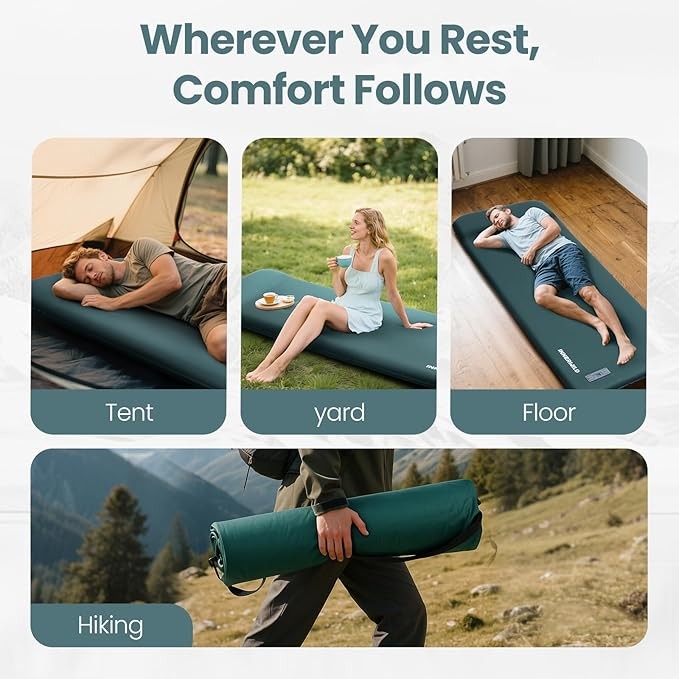 Sleeping Pad for Camping, 3.15" Thick Self Inflating Sleeping Camping Pad with Pillow&Electric Pump,Memory Foam Camping Mattress Pad, 4-Season Camp Sleeping Mat for Travel,Car,Tent,Home-Green