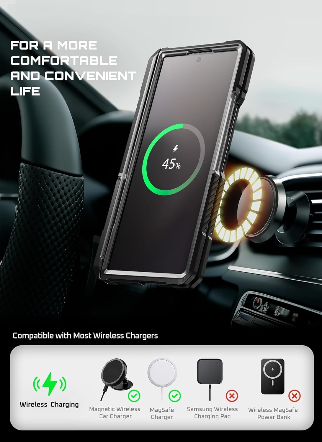 SUPCASE for Samsung Galaxy Z Fold 7 Case with Kickstand (UB Grip), [Compatible with MagSafe] [Built-in Tempered Glass Screen Protector] [Hinge Coverage] Military-Grade Protection Phone Case, Black