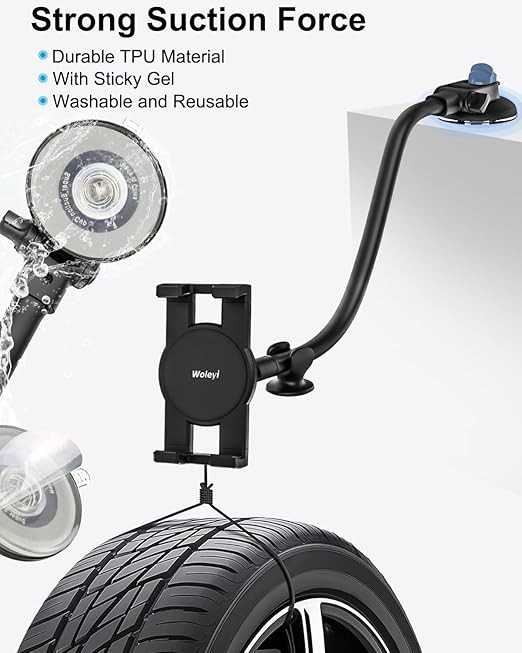 woleyi Tablet Holder for Car Dashboard Windshield [Gooseneck Long Arm] Suction Cup iPad Holder for Car, Car Tablet Mount Compatible with iPad Pro Air Mini, Galaxy Tabs, Cell Phones, 4.7-13" Devices Vi