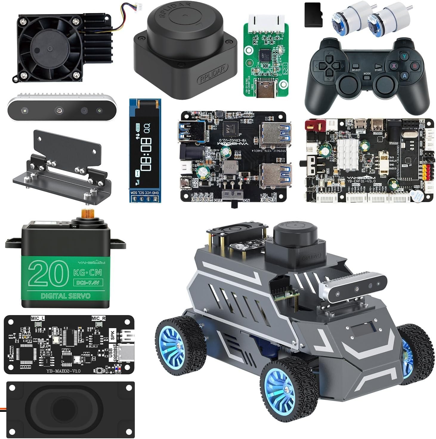Yahboom Raspberry Pi 5 8GB for AI Robot Car,Supports RVIZ Simulation ROS2,TOF Lidar,SLAM Mapping Navigation, Tracking and Obstacle Avoidance (Ultimate Ver Without Pi5)