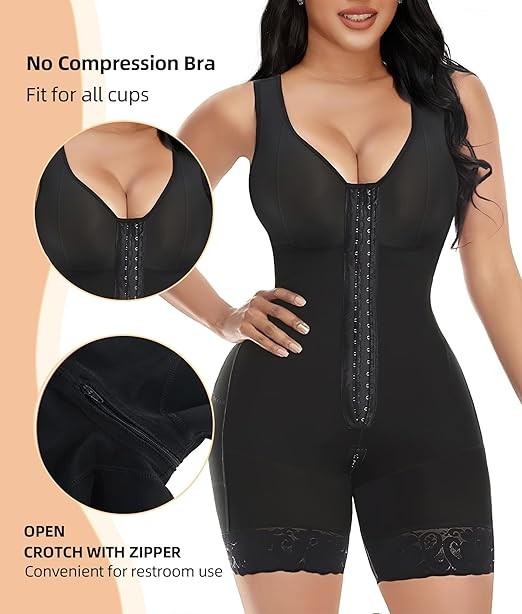 YIANNA Fajas Colombianas Shapewear for Women Tummy Control Post Surgery Full Body Shaper Butt Lifter with Zipper Crotch
