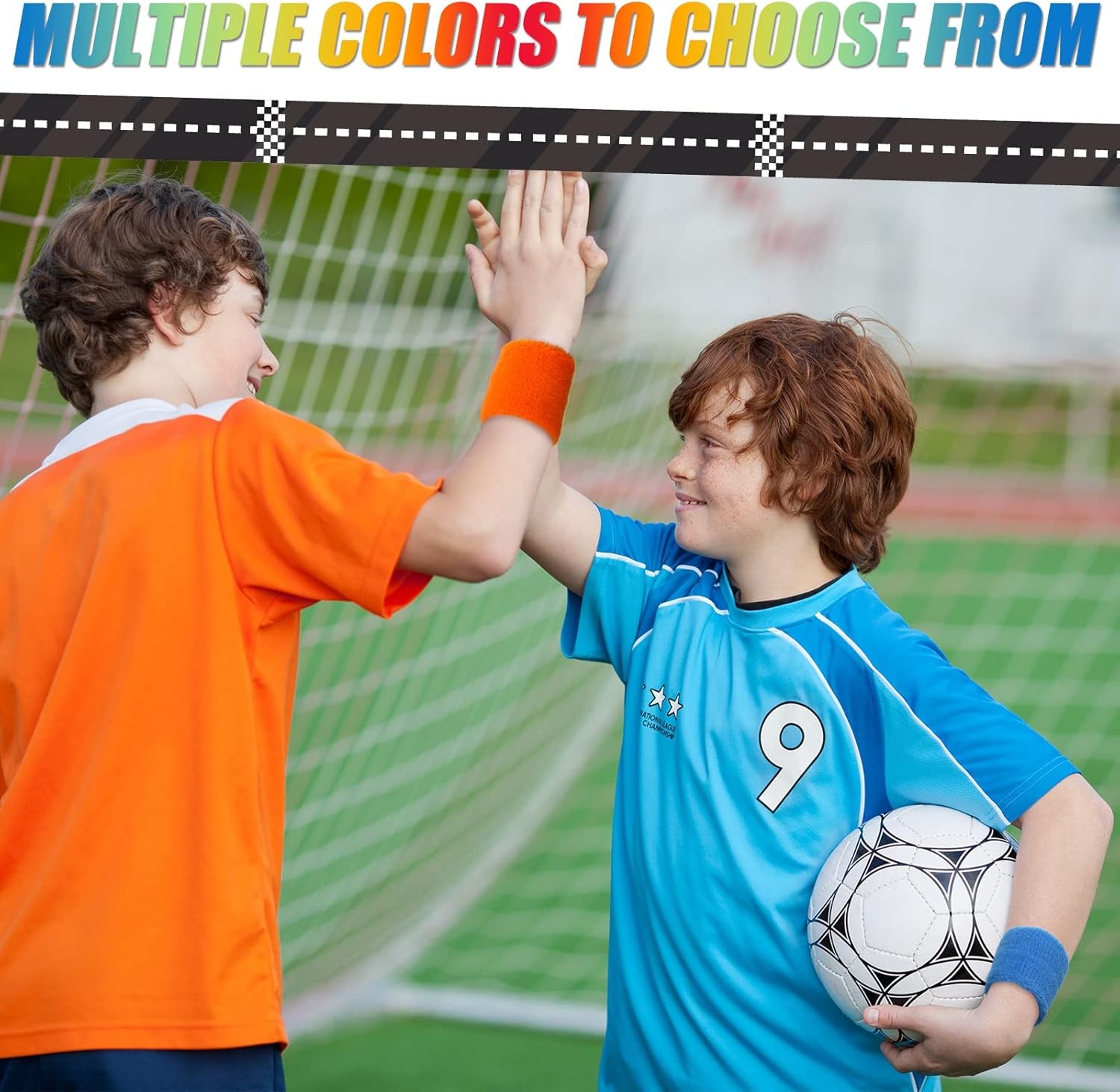 12 Pairs Kids Wristbands Sweatbands Colorful Sports Wrist Sweat Bands Athletic Basketball Football Party Favors for Kids Outdoor Activity