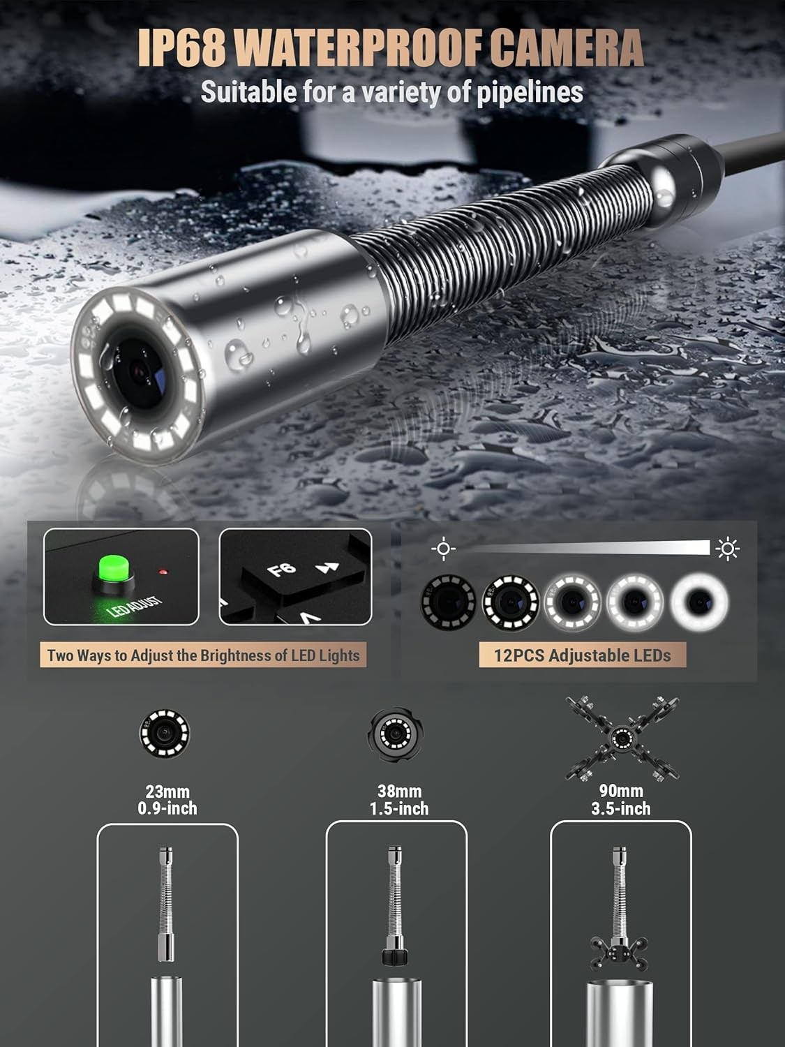 Anysun All-in-1 Sewer Camera - 512Hz, Distance Counter, Self-Leveling, 1-Touch Video/Audio, 165Ft Pipe Inspection Camera with 9" 1080P Screen, IP68 Industrial Borescope, 16GB