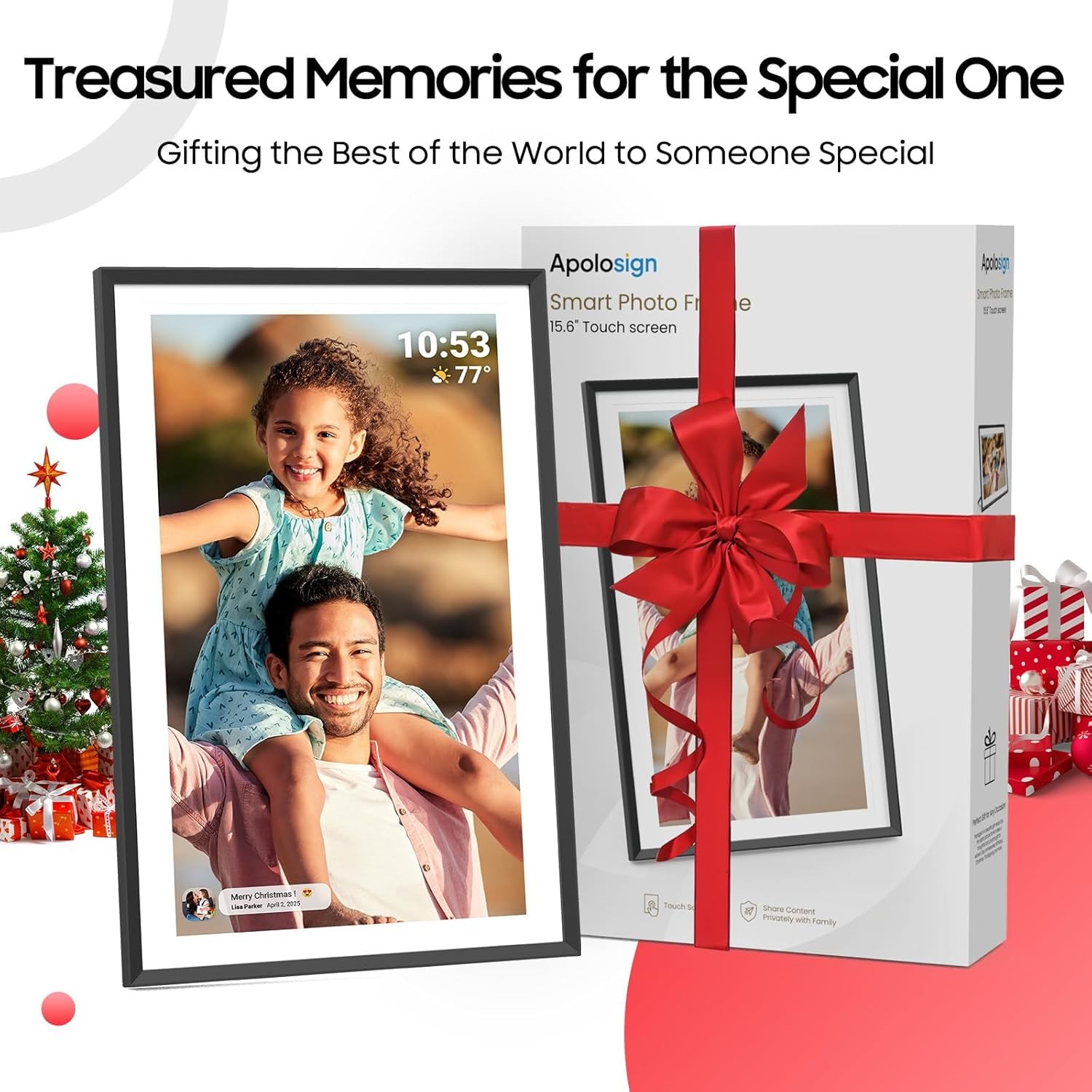 ApoloSign Digital Picture Frame 15.6 inch, WiFi Digital Photo Frame with 32GB Storage, 1920x1080 FHD IPS Touch Screen, Auto-Rotate, Easy Setup to Share Photos or Videos Instantly via Frameo App