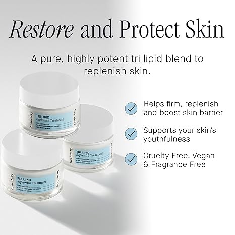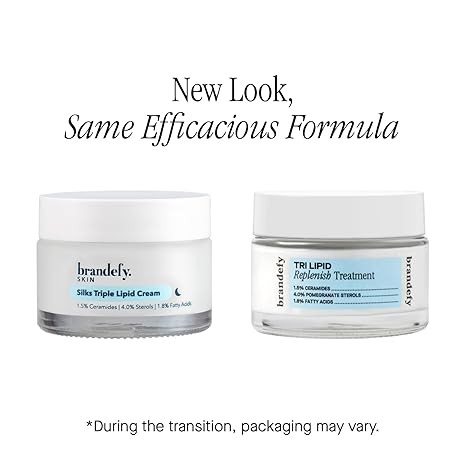 Brandefy Tri Lipid Replenish Treatment - 1.5% Ceramides, 4.0% Sterols, 1.8% Fatty Acids - Peptide Moisturizer, Hydrating Face Cream, Made in the USA (1.6 Oz)