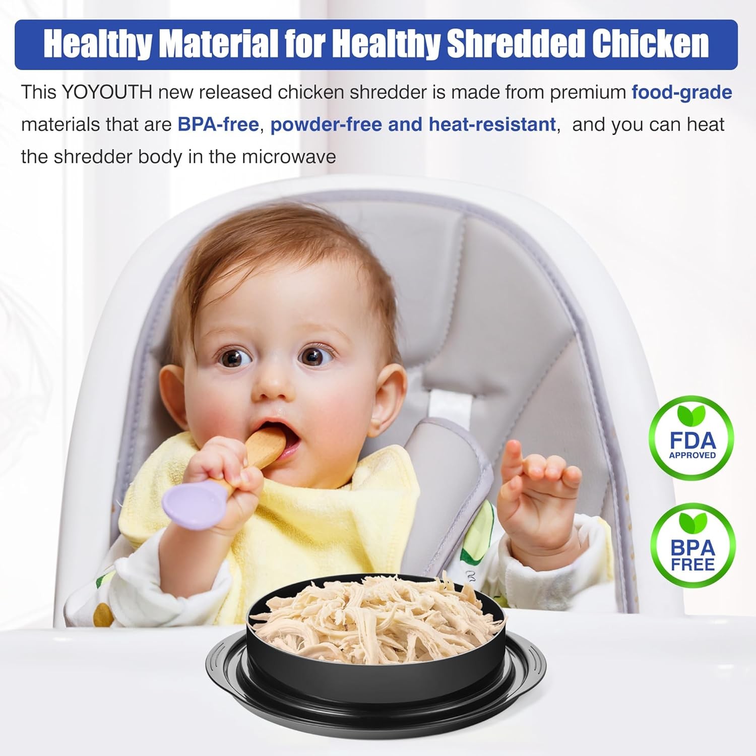 Chicken Shredder Tool Twist: 2025 Pro Food-Grade Visible Meat Shredder with Strong Anti-Slip Base, Ergonomic Handle, Chicken Breast Shredder, Suitable for Pork Beef Chicken - Black
