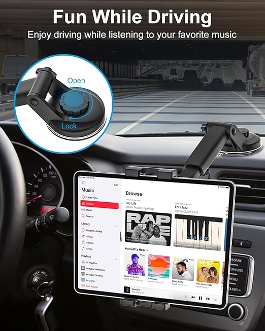 GDZN Dashboard Tablet Mount for Car, [Replaceable Suction Cup] Dash Tablet Holder Clip with Strong Sticky Gel Suction Cup for iPad Pro Mini Air, Galaxy Z Fold, Tabs, iPhone, Fire, 4-11" Device