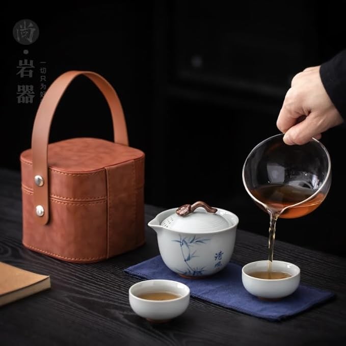 Hand-painted travel tea set Tea set portable quick cup camping outdoor travel one pot and two cups covered bowl Kung Fu tea cup tea cup