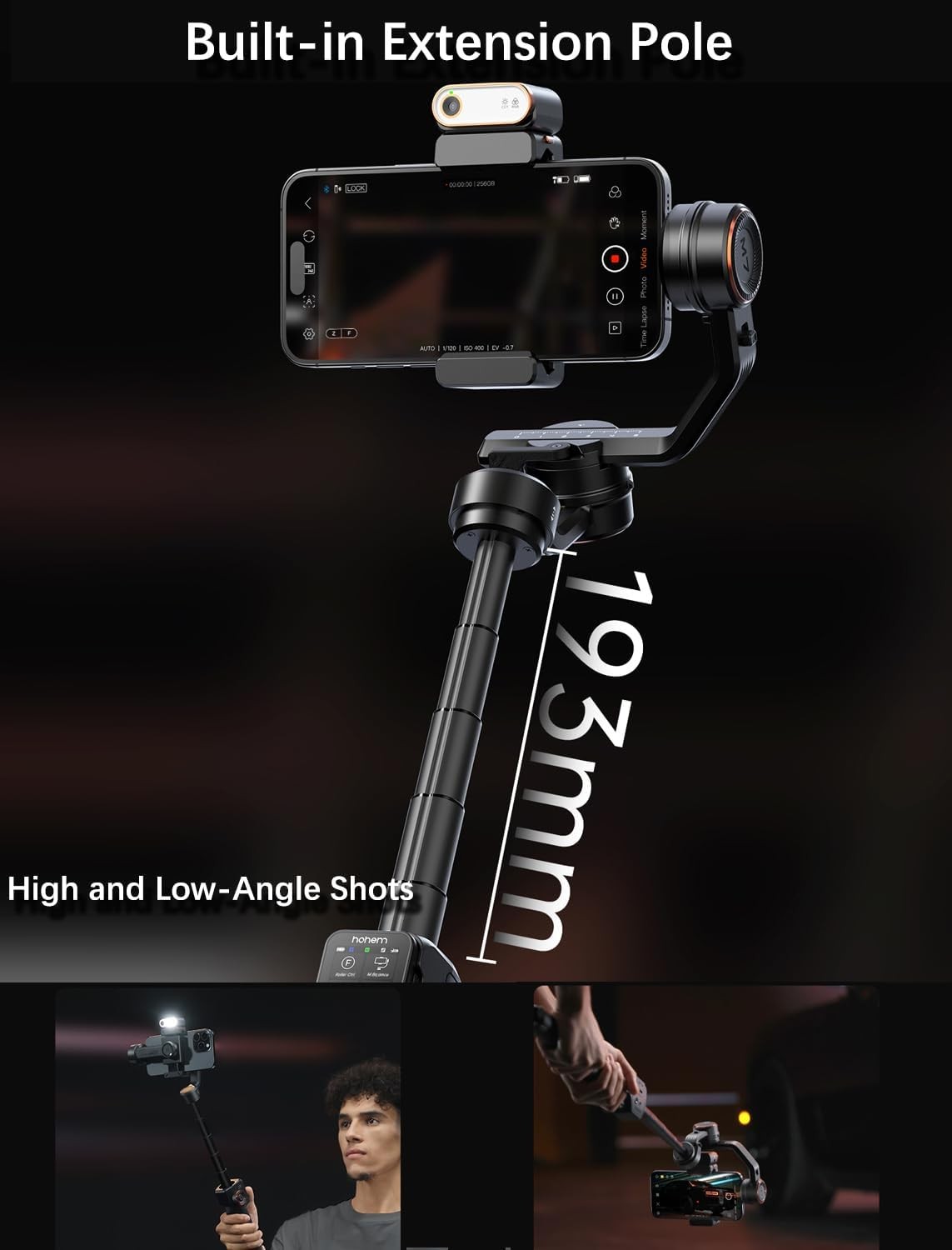 hohem iSteady M7 Gimbal Stabilizer for iPhone, 3-Axis Smartphone Gimbal with Magnetic AI Tracker Fill Light, Detachable Touchscreen Remote Controller, Built-in Extension Rod, 500g Payload