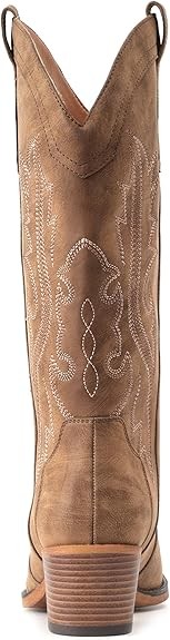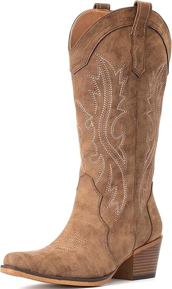 IUV Cowboy Boots For Women Western Cowgirl Boots with Chunky Heel Mid Calf Snip Toe Ideal for low insteps