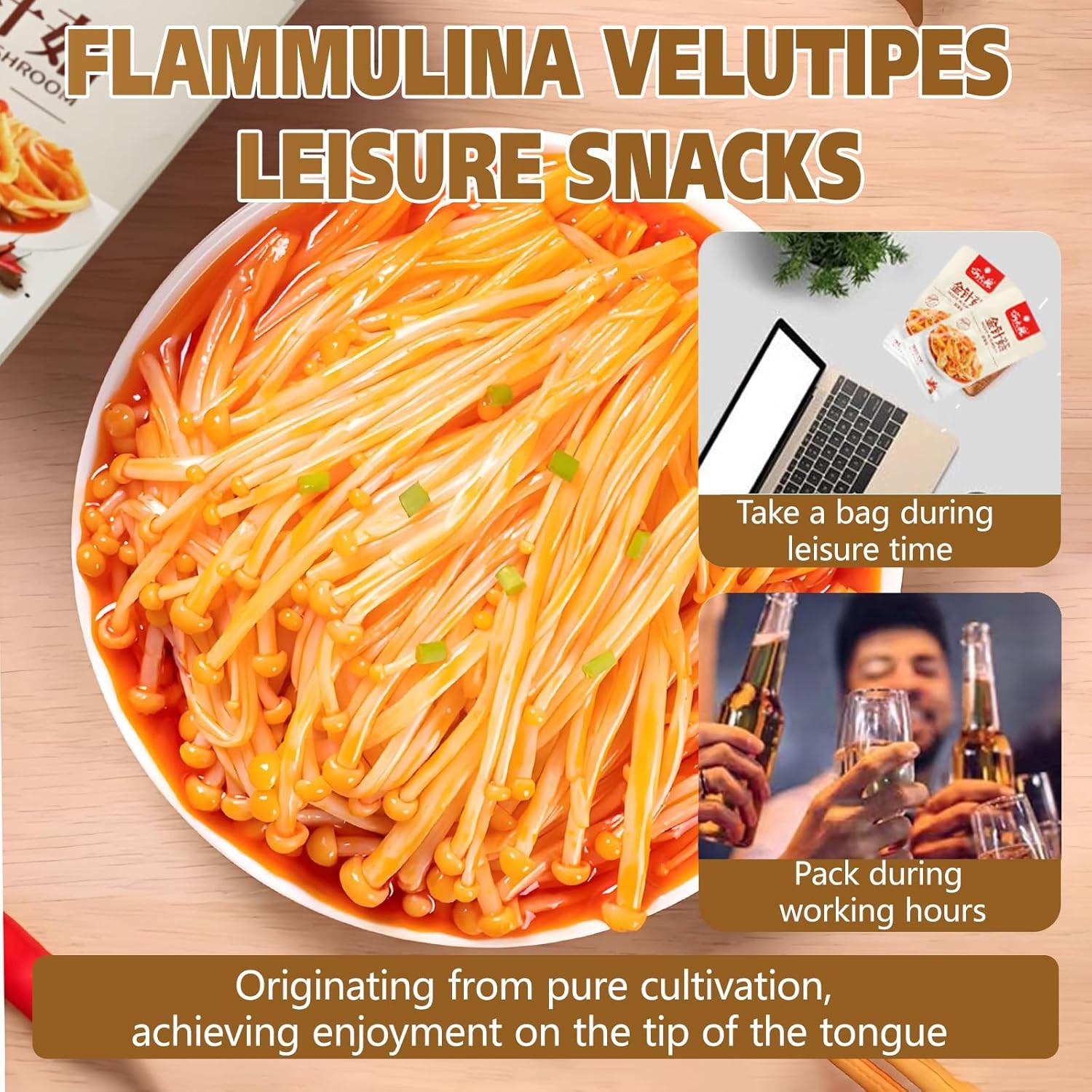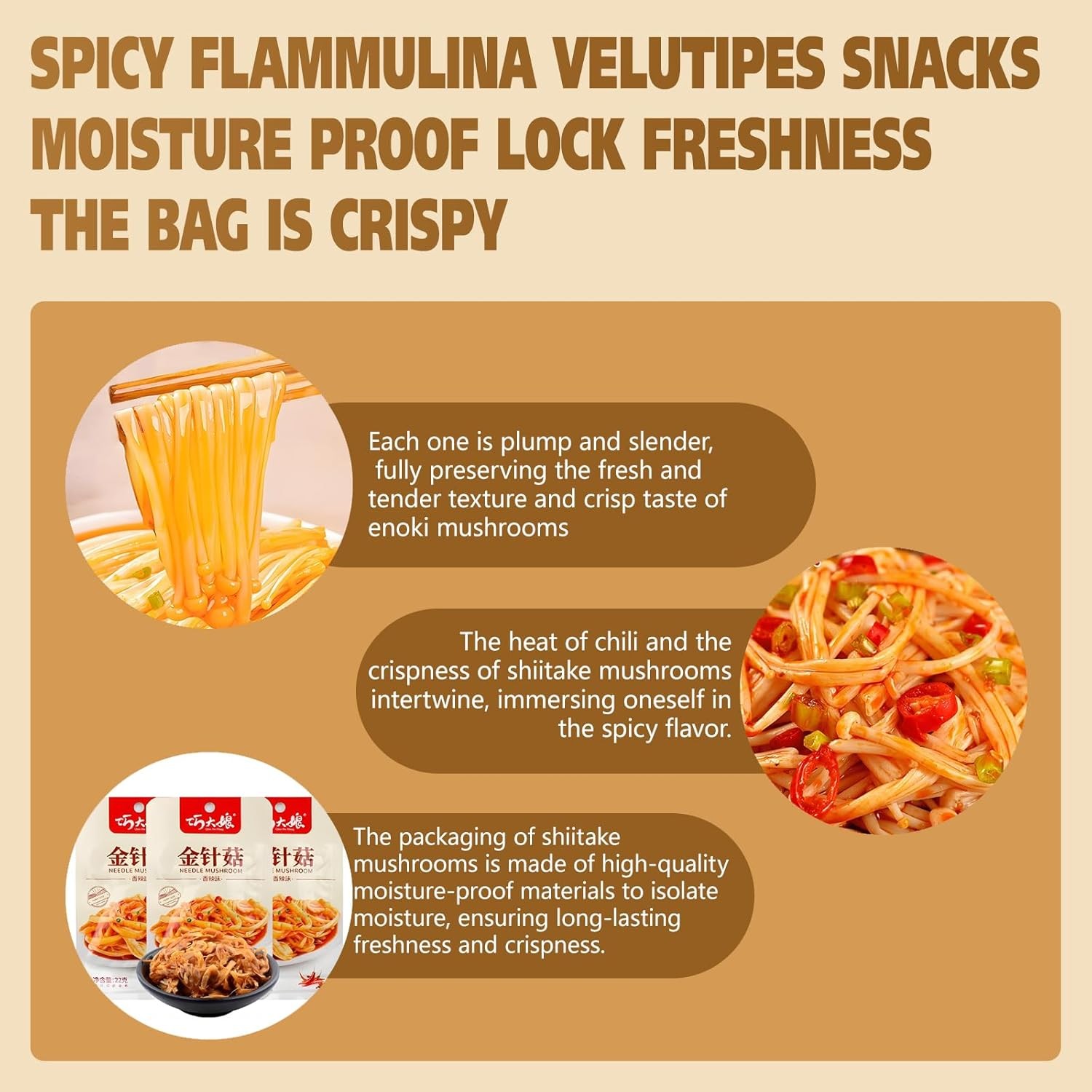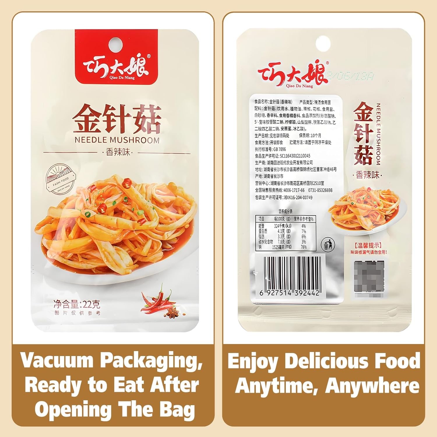 Latiao, Spicy Strip Series, 辣条系列, Flammulina, Snack Food, Small Package, Small Snacks, Spicy Enoki Mushroom, 440g, 20 packets in total.