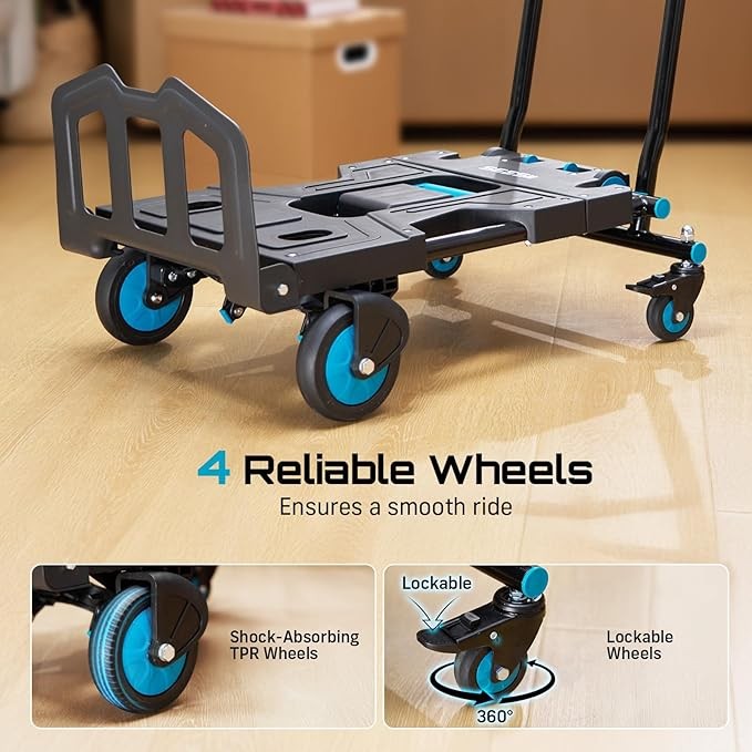SEESII 2-in-1 Folding Hand Truck Dolly, 330 lbs Max Capacity TPR Wheels Heavy-Duty Cart, 3-Gear Retractable Handle for Utility Move Shopping Delivery