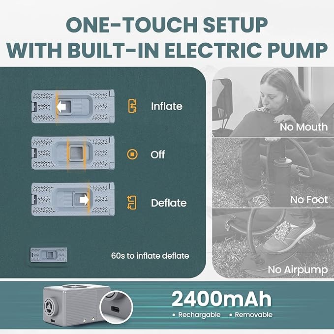 Sleeping Pad for Camping, 3.15" Thick Self Inflating Sleeping Camping Pad with Pillow&Electric Pump,Memory Foam Camping Mattress Pad, 4-Season Camp Sleeping Mat for Travel,Car,Tent,Home-Green