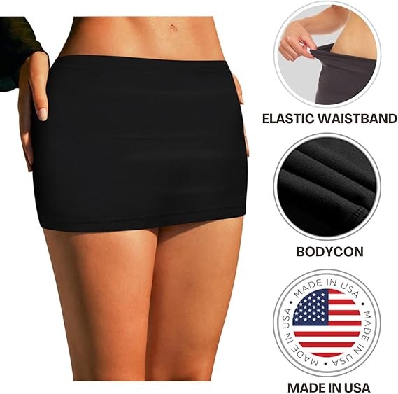 Sweet Hearts Black Mini Skirt for Women- Above Knee Elastic Waist Basic Mini Pencil Womens Skirts Bodycon Made in USA